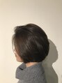 襟足ギリギリのラインでカット、適度にレイヤーを入れることで頭の形が良く、首が細く綺麗に見えます。バングを長めに、後ろに流して大人っぽく。まっすぐに下ろして少しモードになど、意外とアレンジがきくスタイルです。