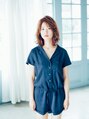 肩下くらいの長さでワンレングスに切りました!抜け感がしっかり出るように内側を軽くしトップと顔周りにレイヤーを入れてふんわり動きを出しやすくしました!カラーはベージュナチュラルなグラデーションに染めてあります!