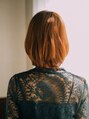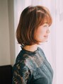 首が隠れるくらいから少し前上がり気味に切ったロブ!ワンカール内巻きに入り首が出ることにより小顔効果アップ!前髪は流して大人っぽさを演出!カラーは秋っぽくオレンジ系のカラーで温かみのある雰囲気に☆パーマかけると楽です!