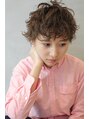 外国人の子供の様な、くるくるカーリヘアにスパチュラカラーで立体感を出した個性が引き立つヘアスタイルです。襟足や細かい所まで細かいロッドで巻いてパーマをかけているので簡単スタイリングでカーリーヘアのできあがりです。