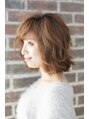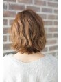 毛先の外ハネと全体のゆるいウェーブが、ナチュラルな大人ぽさを演出。コンフォートベージュのカラーでツヤ感UP♪全体はボブベースで、顔周りの毛量を調節し、動きをだしやすくしました。パーマをかけるのもGood!