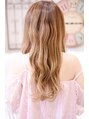 ハイトーンのゆるふわな女の子らしいロングです!前髪はやや長めで流す感じにしています!15トーンのアッシュベージュで赤味を抑えた透明感のある色味にしています!デジタルパーマをかけるとスタイリングが楽になります!