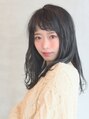 一見黒髪のように見えるが、濃いネイビーカラーで透け感を残したセミロングスタイル。