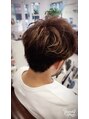 メンズショートパーマスタイルです。少しハイライトも入れてメンズでも外国人風カラーで動きを出してます。ハイライト入れると根元が出ても目立ちにくいのでそのまま保てます。