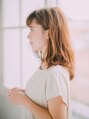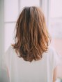 全体にふんわり、やわらかな遊びのある、愛されスタイルになります!軽めな眉上バング、そして外ハネスタイリングで、明るい印象になります。また、ベージュ系の明るめカラーで、女性らしくかわいらしさをプラス!!