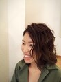 表面にレイヤーを入れて、根元からパーマをかけてあるので自然にふんわりして、スタイリングも簡単です。カラーはマット系でくすませてます。