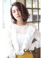 肩上の切りっぱなしボブで大人な雰囲気に。カラーは透明感のあるピンク系