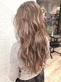 ベースをバレイヤージュハイライトで抜いて、根本暗めの質感にベージュをオンカラー。ウェーブ巻きするとより外国人のhairに近づきます!!