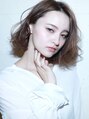透け感のある柔らかいシャーベットアッシュ♪巻くと光に透けて透明感が増します☆重めのボブラインに表面を細かくレイヤーベールカット♪動きの出やすい柔らかいボブに♪