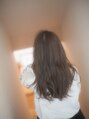ベージックな前上がりのロングスタイルに少しの動きがでるようにレイヤーを入れています。前髪は目ギリギリで流してフェミニンな雰囲気に☆カラーはほんのりピンクをプラスして柔らかさとツヤ感に透明感がでるようにしています♪