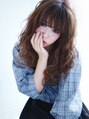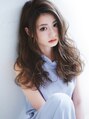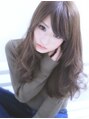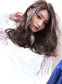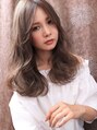 パールグレージュで暗めのカラーでも柔らかく、透け感のあるカラーに♪ゆるウェーブで大人っぽいイメージに☆