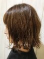 今、流行の外ハネボブです。毛先はあえて重めに残して、全体的にボリュームとカールが出るようにふんわりパーマ感をだすように巻いています。仕上げはグロス感のあるオイルミルクを付けて艶を出したら完成!