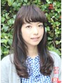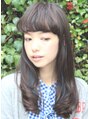バングにボリュームを出して少しだけ個性を加えたロングスタイルです。バングにボリュームを出すことで柔らかさと外国人の子供のようなイメージが出てきます。