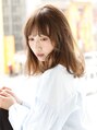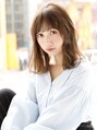 どんなシーンにもマッチする愛されミディアムスタイル。骨格に合わせたフェイスラインカットで小顔効果大。柔らかい質感の秘密は質感調整ドライカットとイルミナカラーで透明感をプラス。毛先ワンカールを外はねに、顔周りと表面をリバースに巻いて仕上げます