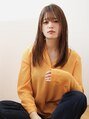 シースルーバングがポイントのロングスタイル。目にかかる長さにすることで目力、大人っぽさを演出。ヘアカラーはイルミナベージュで透明感をプラス。