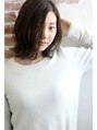 切りっぱなしのロブスタイルも中間に動きをプラスして春らしく。グリーンがかったベージュのカラーで日差しにあたったときに、ふわっと透け感の出る髪色に♪