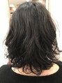 肩につく長さのふわりと揺れ感が可愛いパーマスタイルです。黒髪でも重く見えないのでお仕事などで染められない方にもオススメのスタイルです。