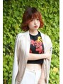 カラーはグラデーションで一度明るくしてからダークブラウン~レッド系をオン仕上げにコテで外ハネにして、ヴィヴィッドなカラーがより目立つようにスタイリング!