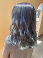 前回のハイライトを活かしたカラー♪ベースはアッシュグレー、ハイライトはブルーのデザインカラーです。個性を出したい方やデザインをやりたい方にオススメ!