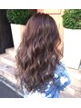 太いハイライトと細いハイライトが細かくランダムに入った、ベースはブリーチなしのアッシュベージュ。ハイライトをたくさんいれることで全体をブリーチしなくても髪を明るくみせることができます。動きがでるカラーです!