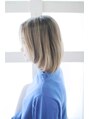 ハイトーンのカラーが特徴的な、かきあげ前髪のワンカールボブスタイルです。扱いやすいのも人気の理由です。
