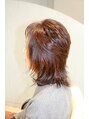 トップにボリュームを入れサイドとバックはシャープな感じにカットし、ブラウン系オレンジでマニキュアをしています。