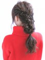 波ウェーブでほどよいラフさや動きを低い位置でロープ網、三つ編みしたものをまとめてアレンジ♪
