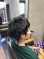 サイドからバックまでソフト刈り上げ。ランダムにパーマをかけ動きが出るようにしました。
