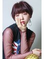 骨格にに合わせたコンパクトなマッシュショートにマゼンタのカラーでオシャレなスタイルです