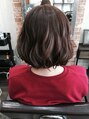 アゴ下ラインのボブで、内巻きにプラス表面にコテで巻いて動きを出しました♪コテ巻きではなく、パーマをかけて動きを出すのもOK☆