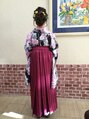 大学の卒業式という事で袴着付とヘアセットを担当しました♪謝恩会もおなじスタイルで行くという事で全体に編み込みを入れて長時間でも崩れないスタイルにしました!