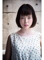 個性的な斜めバングとグラデーションカラーのナチュラルボブです。分け目や長さを変える事で顔型を問わずに似合わせやすくなります。【自由が丘】