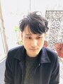 ツーブロックベースにトップに立ち上がりをだす。あくまでナチュラルな外国人風にパーマをかける。