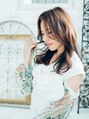 ナチュラルなミディアムロングスタイル! ユルっとした毛先のニュアンスパーマで柔らかい感じが出て女性らしさが増します!バングも長めのセンター分けにすることで大人のお姉さん感も出て伸ばしかけロングのスタイルにはオススメです!