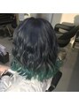バージン毛スタートでブリーチ2回でベースをパステルブルー毛先にパステルグリーンのユニコーン系のカラーリングブリーチで赤みのないペールイエローまで抜いてあってカラー剤の調合が白っぽく抜けていく感じなので色落ちもかなり楽しめます!!