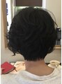 えり足部分はスッキリと首に沿うように、トップはフンワリとするようにメリハリがあるスタイルに。毛先に動きが出るようjにパーマをかけて春らしい動きのあるスタイルに仕上げました。