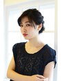 トップ、センター、サイドをねじってピンでとめたアップスタイル。あごラインボブでもきちんとした印象になるレディなヘアセットです。最後にしっかりとくずしてふんわり感をつけて。【EARTH○○】