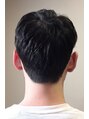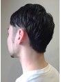 トップを短めにカットし、更にツーブロックにすることで、全体的にさっぱりと涼しげなヘアスタイルにしました。襟足は刈り上げすぎずに、ナチュラルに繋げています。