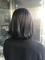 ブリーチ1回後ネイビーアッシュに♪カットは切りっぱなしボブにして、仕上げは透明感の出るようにツヤを♪