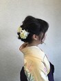 卒業式アレンジ。今年の流行は飾りの花を大胆につけて存在感を出すと、華やかになります。卒業式はアップしてもダウンでもどちらでも袴に合いますね。