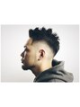 ボックスのシルエットに束感を出したポンパスタイル。フェードラインはミドルフェード。