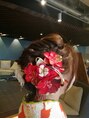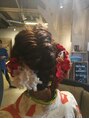 お母様のお着物で落ち着いたイメージでしたのでヘアアレンジはキュートにフィッシュボーン編み込みです。