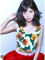 色味の濃いブルーアッシュ♪重めのミディアムスタイルは、強めのミックスカールで抜け感や柔らかさを☆耳かけする事でオトナ可愛いスタイルにも♪