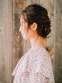 顔周りをルーズに残して決めすぎないまとめ髮スタイル。後ろはクルリンパを重ねてこなれ感をプラスしました。