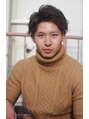 サイドはツーブロックを入れてスッキリ感を出し、ゆるめのスパイラルパーマをかけた七三スタイル!、スタイリングは立ち上げても下ろしもキマる2wayスタイルです。全体的にワックスを揉み込んで崩しながらセットする簡単スタイリングヘア!!