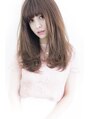 あご下10センチから動きをつけて小顔効果を。バングは大人可愛いデザインで。揺れる毛先が抜け感ある今時ロングに。