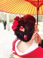 打掛に洋髪スタイル。赤い飾りが素敵です