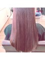 - イルミナカラーのコーラルとトワイライトをミックス。カットは毛先を揃えて重たいスタイル。