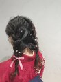子供っぽくなりがちな、ツインテールスタイルを大人スタイルに!!ラフに編み込み、四つ編みでまとめています!!更に、パールや小花を散らし、可愛く!!