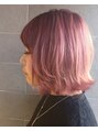 ブリーチで14レベル以上まで明るくして、透明感のあるピンクバイオレットに。根元を全体よりも濃く色を入れて、立体感のある、見る角度によって色が違って見えるサクラ色は、人とかぶりたくないオシャレさんにピッタリ!外ハネボブも段を入れてエアリーに。